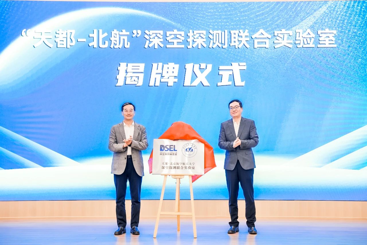 王云鹏、胡朝斌共同为“天都-北航”深空探测联合实验室揭牌