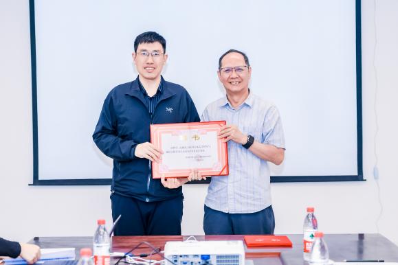 冯文全为学术委员会主任陈军宁颁发聘书,陈军宁为学术委员会委员赵巍胜、龙世兵、洪一、吴大畏、张悦颁发聘书。
